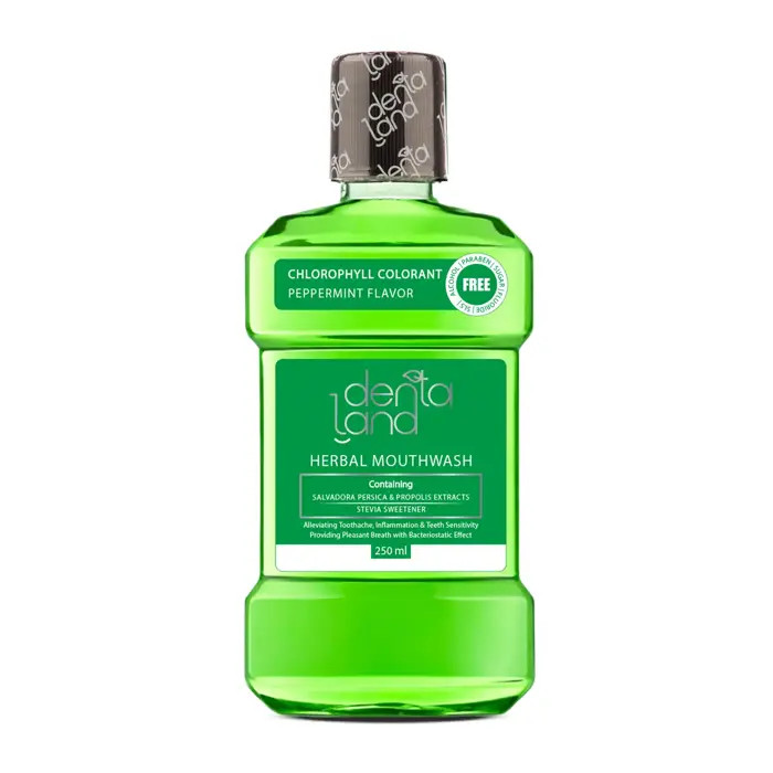 دهانشویه گیاهی غیرالکلی Dentaland با ترکیبی منحصر به فرد از عصارههای طبیعی و مواد فعال، به منظور بهبود بهداشت دهان و دندان و پیشگیری از مشکلات مختلف دهانی تولید شده است. عصاره روغنی نعنا فلفلی در این دهانشویه خوشبو کننده دهان است و همچنین با خواص ضدعفونیکننده، به تسکین التهاب لثهها کمک میکند، بعلاوه به این دهانشویه عطر و بوی خوشی میدهد که تجربه استفاده از آن را دلپذیرتر میکند. عصاره آویشن به دلیل خواص مهارکننده باکتریایی خود، در کاهش باکتریهای مضر دهان و پیشگیری از بوی بد نفس تاثیرگذار است. عصاره گل میخک و برگ درخت چای با کاهش التهاب لثهها و از بین بردن باکتریهای مضر در حفظ سلامت دهان و دندان موثرند. عصاره آلوئهورا نیز رطوبت دهان را افزایش داده و خشکی بعد از مسواک زدن را میکاهد. در این دهانشویه گیاهی عصاره برهموم با خواص ضدعفونیکننده و ضد التهابی خود، به تقویت سلامت دهان میپردازد و در پیشگیری از عفونتهای دهانی و مشکلات لثه اثرگذار است.